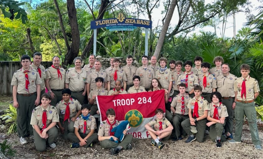 In 2023, Troop 284 sent its first crews to Sea Base in Florida. Over the winter break, crews sailed through the Florida Keys. In the bright sunny days, they navigated to islands and through coral reefs. The evening brought star filled skies and an astronomy lesson that could not be missed. They learned how to operate a sail boat, ocean fishing, snorkel, and more.